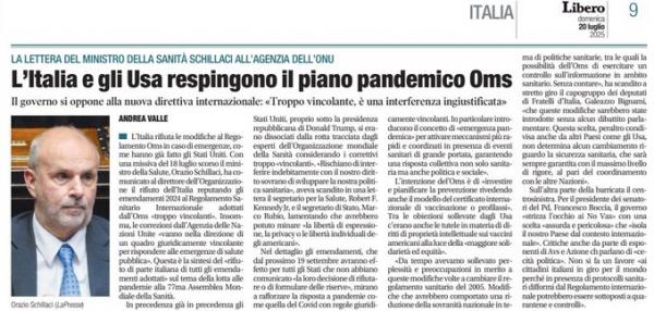 Il 18 luglio l’Italia ha notificato, nel pieno diritto previsto dal Regolamento Sanitario Internazionale (art. 61) il rifiuto degli emendamenti all’OMS, ma si è trattato di una scelta unicamente politica, fatta per accontentare quell’elettorato che ha portato chi governa a diventare partito di maggioranza, e non di una scelta logica fatta ascoltando chi di sanità ed emergenze ne capisce qualcosa. Gli emendamenti entreranno comunque in vigore per tutti i Paesi che non hanno espresso riserve sugli stessi (ovvero la stragrande maggioranza dei paesi membri dell’OMS). L’Italia quindi si isola su un accordo globale che mirava alla collaborazione internazionale. L’accordo avrebbe rafforzato la cooperazione sanitaria, noi restandone fuori alla prossima emergenza saremo isolati; come si possa non capire quanto questo sia grave e pericoloso, tutt’altro che una vittoria, è qualcosa che ci lascia senza parole.