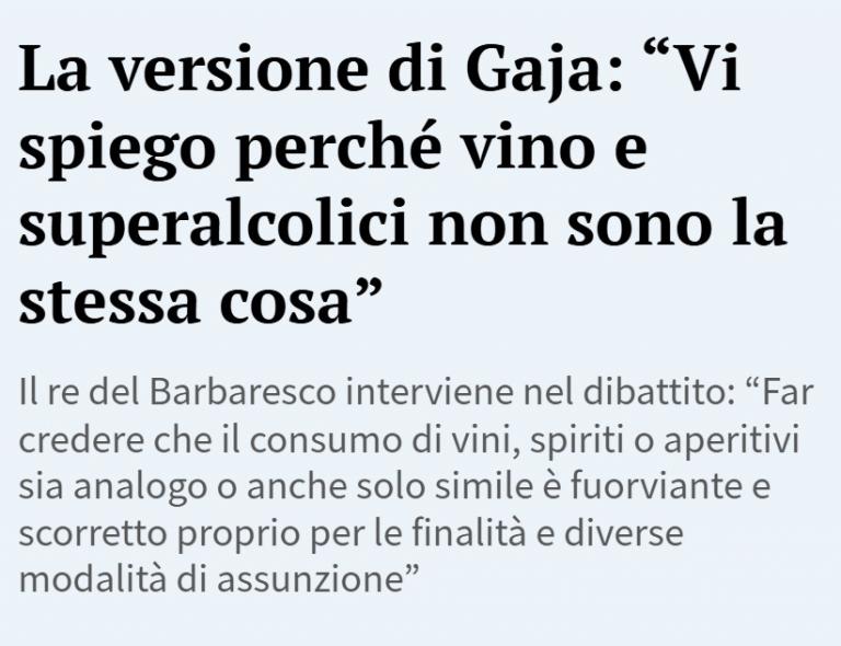 Il problema difatti non è la confusione tra vino e superalcolici, ma il fatto che nel nostro Paese si parli del vino come “meno dannoso” senza che vi siano basi scientifiche reali a sostegno della tesi. La richiesta sottintesa di Gaja di separare il vino dagli altri alcolici è una strategia di marketing, non un ragionamento basato sui dati sanitari. La redazione de La Stampa se ne rende conto? Non crediamo.