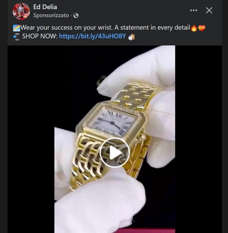 E, ovviamente, qui sopra abbiamo fatto riferimento a uno specifico post sponsorizzato, ma al momento su Meta il numero di post truffaldini sulla materia orologi di lusso è infinito: