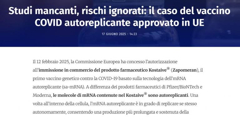 Studi mancanti, rischi ignorati: il caso del vaccino COVID autoreplicante approvato in UE